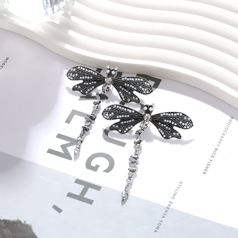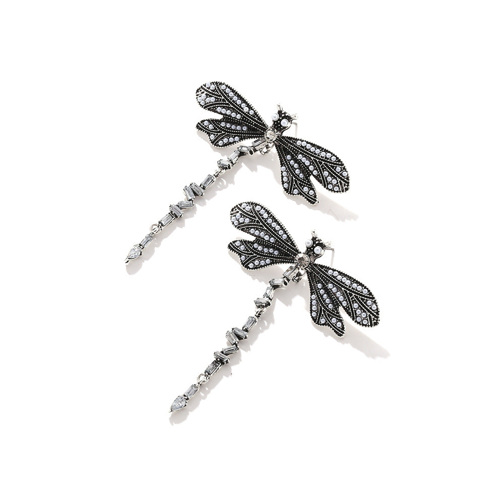 Alloy sparkler dragonfly retro texture insect earrings for women jlt13284