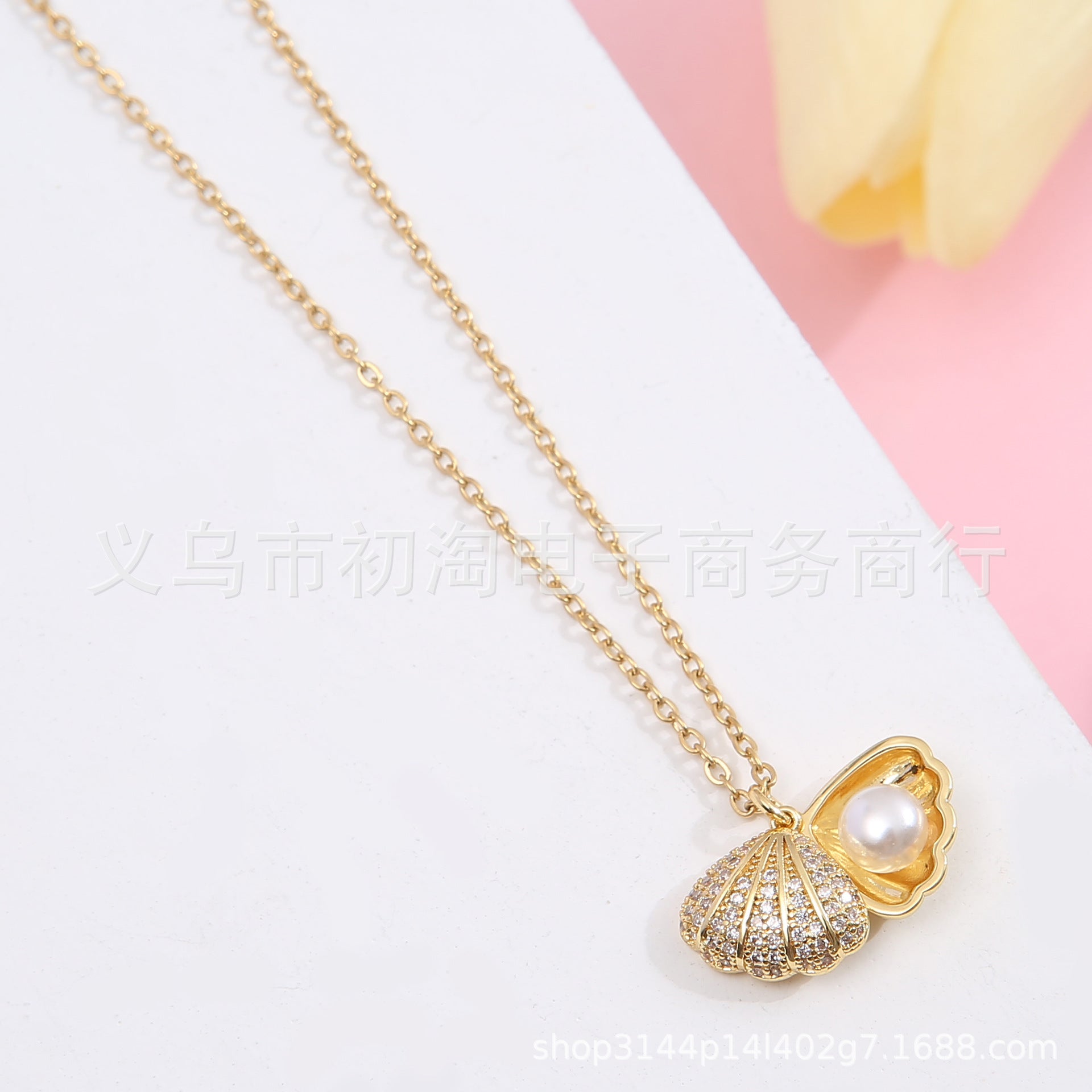 "Pearl Shell Pendant Necklace | Elegant Gold Jewelry for Ocean Lovers" jltn0653