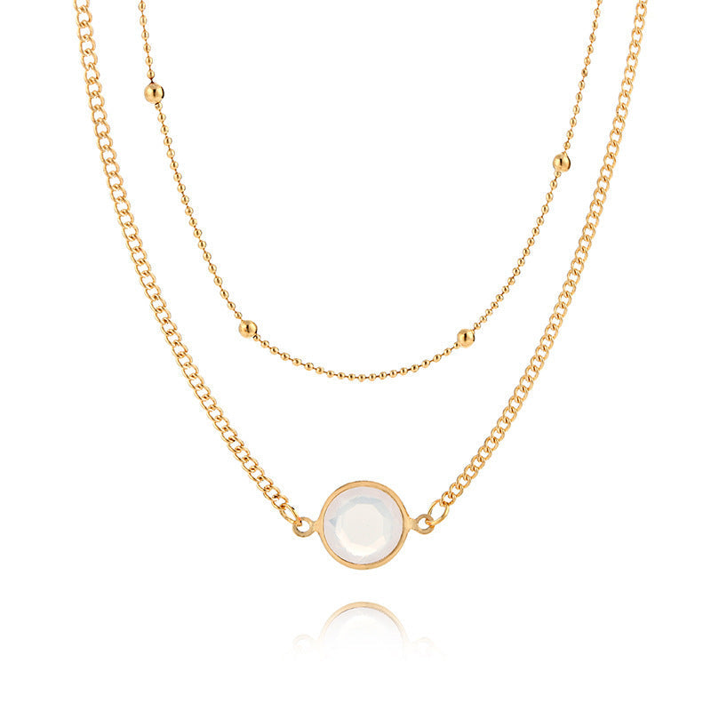 "Double Layered Gold Necklace with White Gemstone | Timeless Minimalist Jewelry" jltn0655