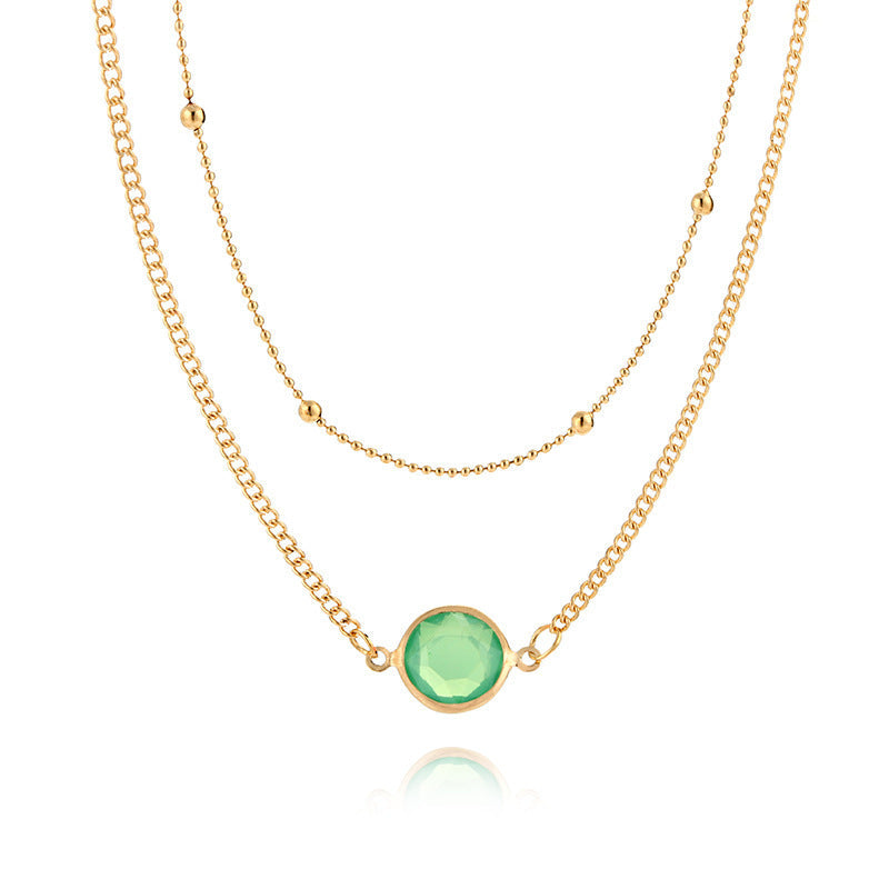 "Double Layered Gold Necklace with Green Gemstone | Stylish Minimalist Jewelry"-jltn0657