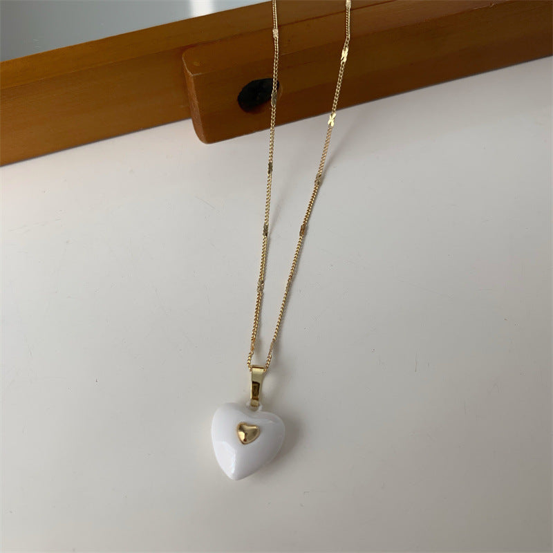 "Showcase your sweet side with our White Heart Pendant Necklace, a delightful accessory that adds a touch of elegance to your jewelry collection. This beautiful necklace features a glossy white heart pendant, elegantly accented with a gold heart at its center, suspended on a delicate gold chain. Perfect for everyday wear or as a thoughtful gift for someone special, this necklace radiates charm and positivity. Crafted from high-quality materials for durability and lasting shine, it’s an essential piece for anyone who loves whimsical yet sophisticated jewelry. Shop at today and enjoy free shipping on orders over ₹499."