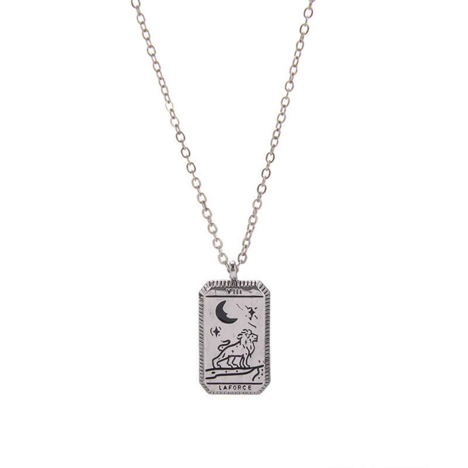 "La Force" Tarot Card Necklace – Silver-Plated Strength Symbol Pendant for Courage & Resilience jltn0620