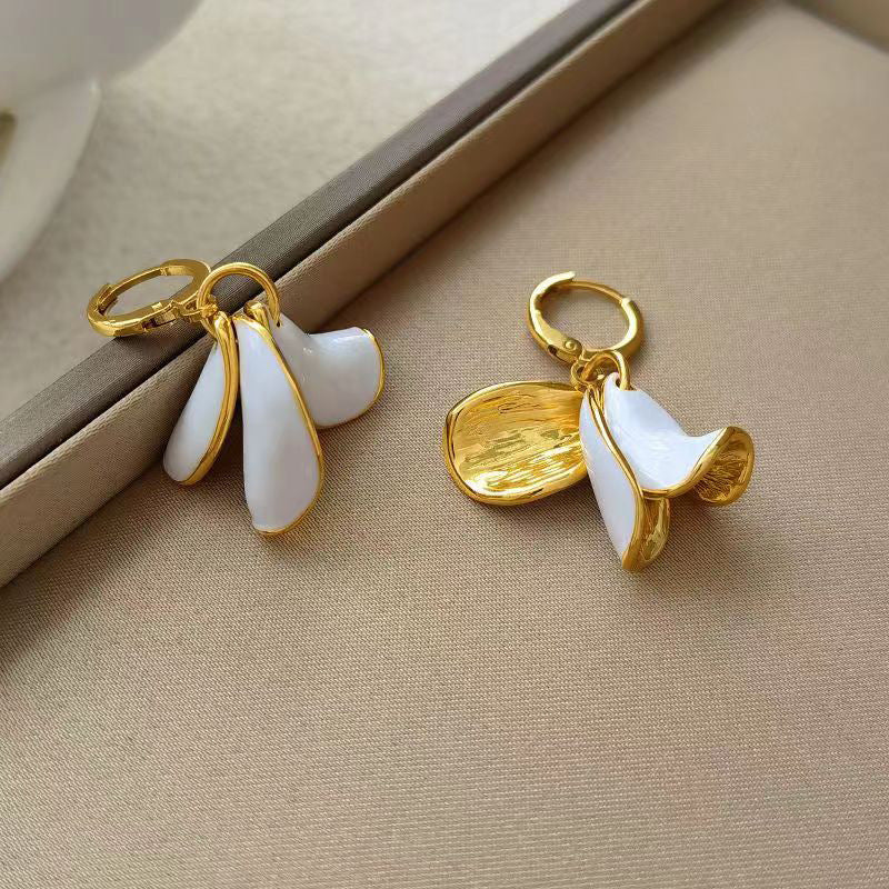 Bring a touch of nature-inspired elegance to your look with these White Enamel Flower Drop Earrings. Crafted with a beautiful gold-color finish and delicate white enamel petals, these earrings exude sophistication and charm. The unique floral design offers a playful yet refined statement, perfect for elevating both everyday outfits and special occasion ensembles. Lightweight and versatile, these dangle earrings are an ideal choice for anyone who loves stylish, graceful accessories. A perfect gift or a chic addition to your own collection, these earrings capture the beauty of blossoming flowers with a modern twist.