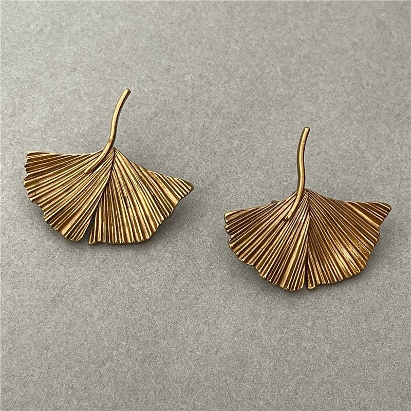 Antique Gold Ginkgo Leaf Earrings-jlt11667