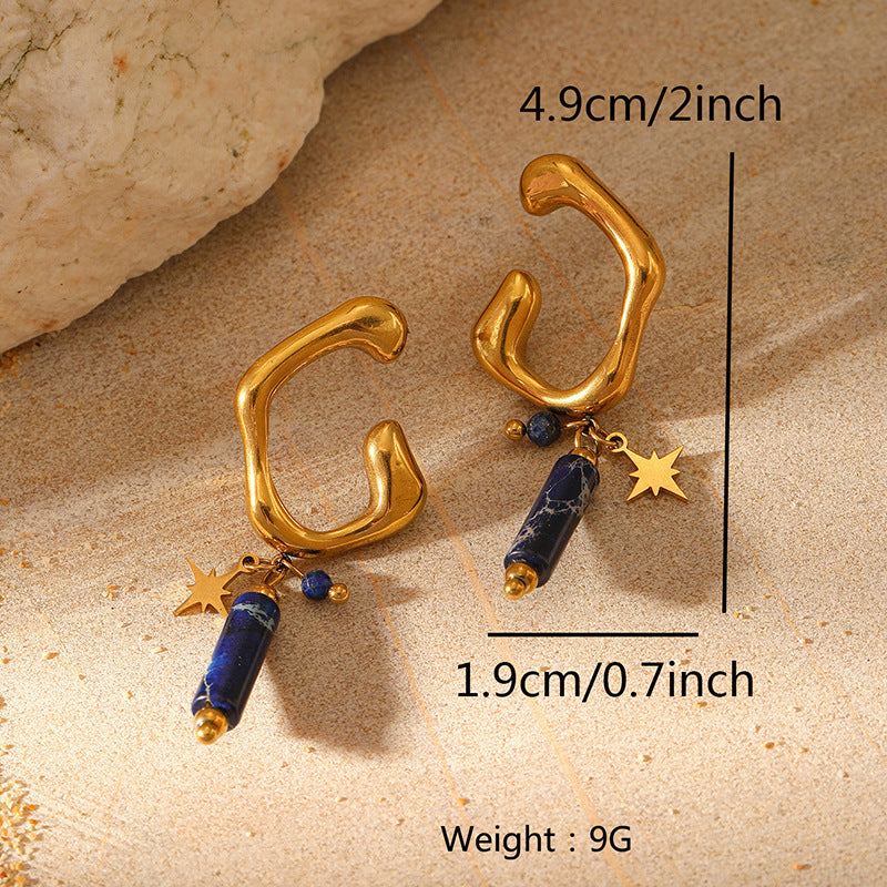 Unique Golden Cuff Earrings with Starry Blue drops JLT13071