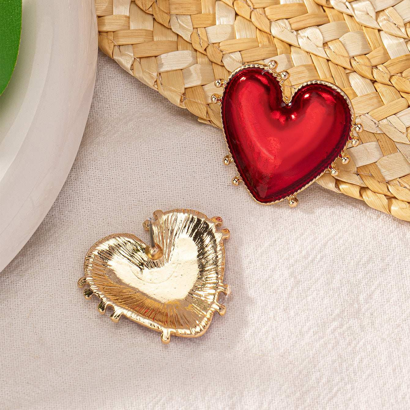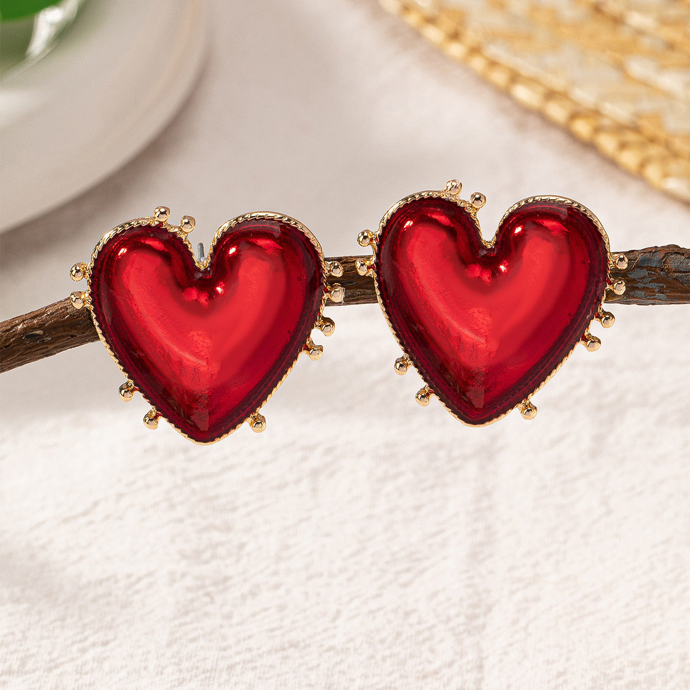 Unique Shiny Heart Red Pin Earrings JLT12879