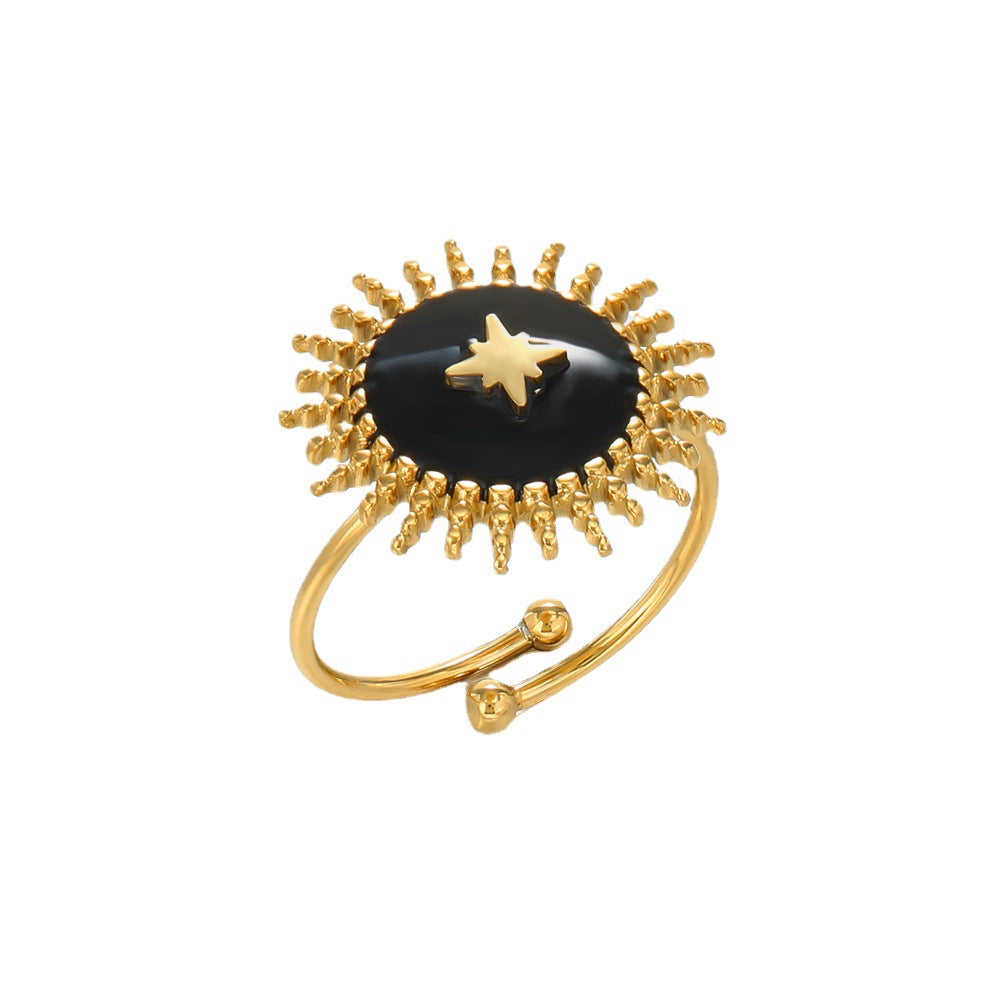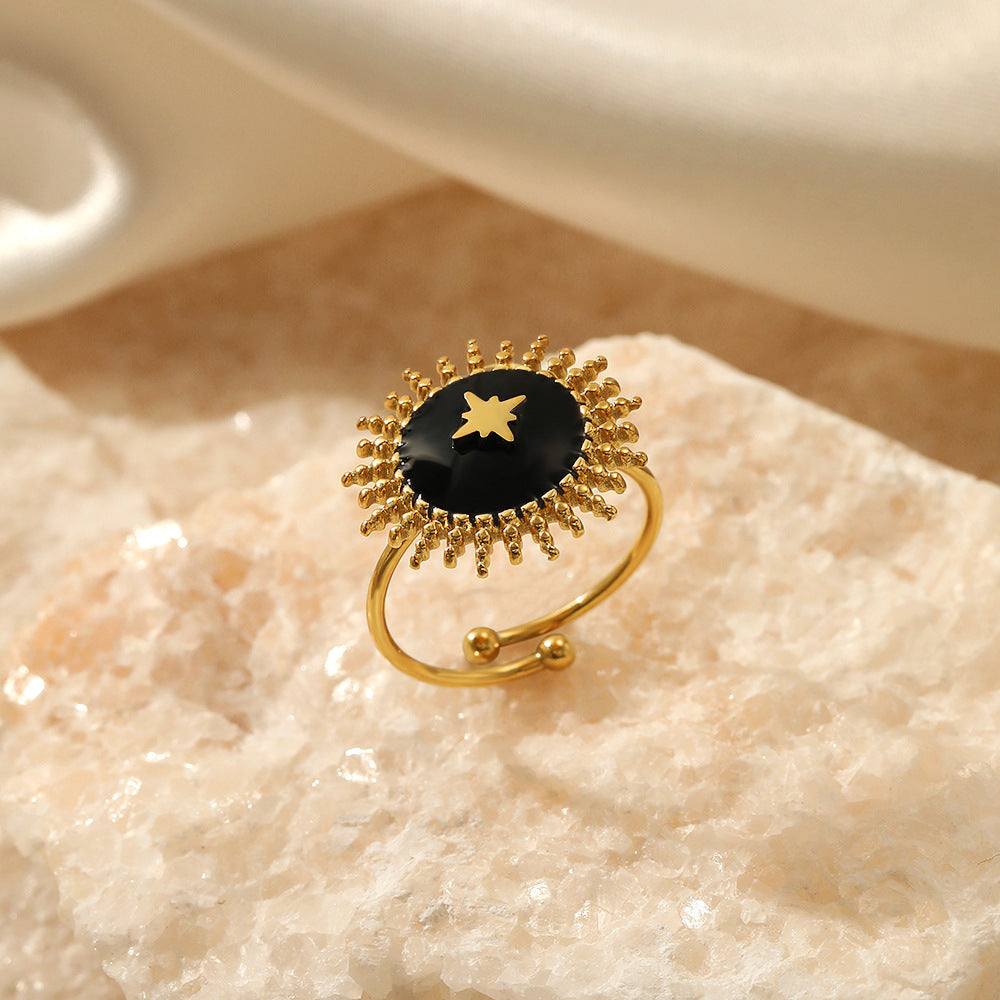 Vintage Black Enamel Star Gold Ring JLTR0369