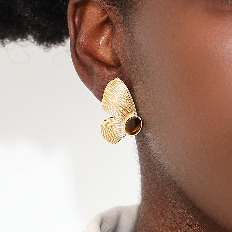 Vintage Butterfly Inlay Gold Stud Earrings JLT12795