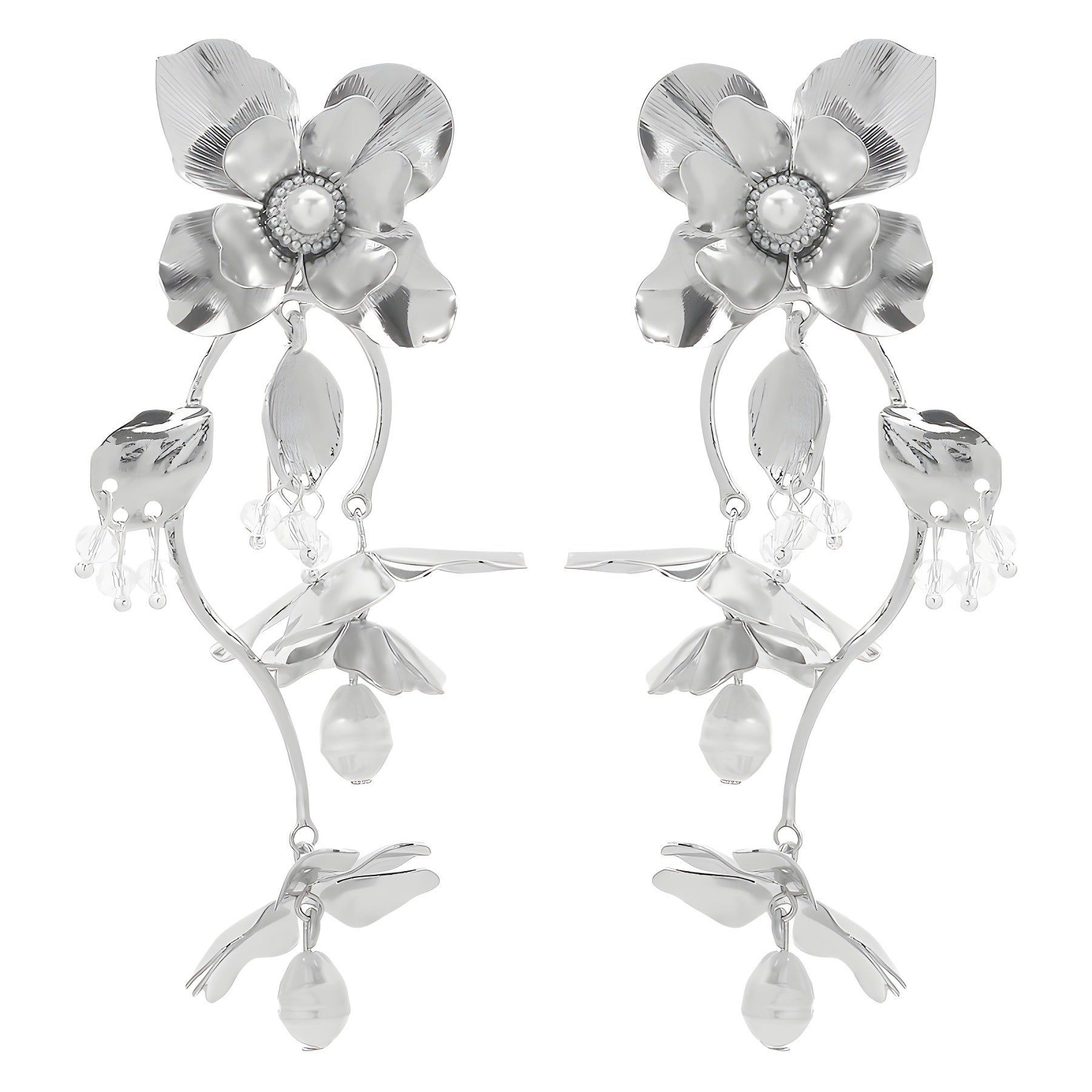 Vintage Floral Style Silver Drop Earrings JLT12866
