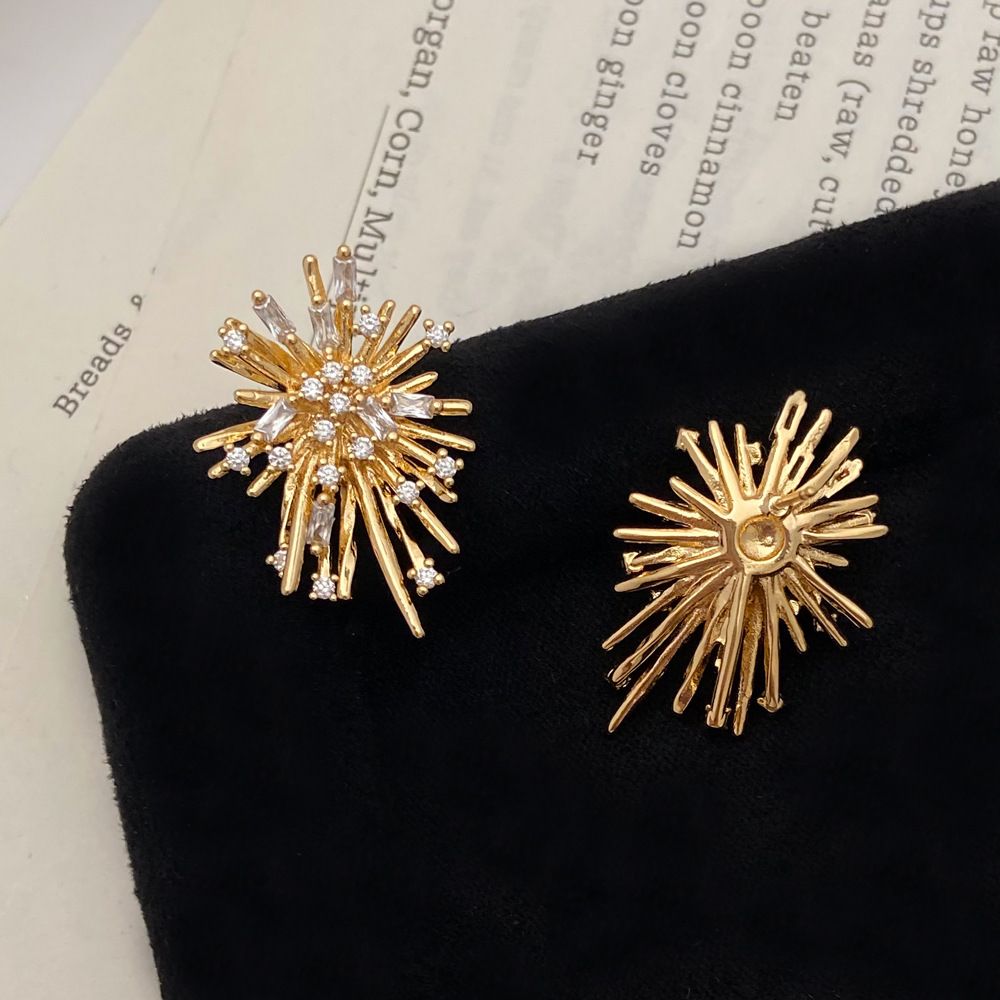 Vintage Sparkling Fireworks Gold Pin Earrings JLT12912