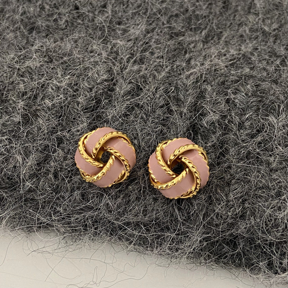 Vintage Trifari Enamel Knot Button Pastel Stud Earrings JLT12709